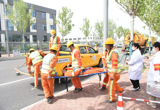 項(xiàng)目總指揮接到報(bào)告后立即啟動(dòng)應(yīng)急預(yù)案,同時(shí)緊急抽調(diào)各方應(yīng)急救援隊(duì)伍迅速趕赴現(xiàn)場(chǎng),開(kāi)展安全生產(chǎn)應(yīng)急救援、現(xiàn)場(chǎng)醫(yī)療救治相關(guān)處置工作,待傷者逐漸恢復(fù)意識(shí),隨后組織車(chē)輛將傷者送院就醫(yī)。至此,本次演練結(jié)束。