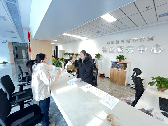 青年公寓作為園區(qū)高品質公寓,主要為園區(qū)企業(yè)人才配套,一經推出便受到企業(yè)一致好評。當天上午,簽約現(xiàn)場一片火熱景象。在工作人員的引導下,意向住客詳細了解公寓的房間設施、周邊配套等情況,并簽定租賃合同,辦理交房相關手續(xù)。