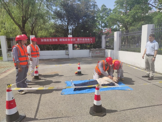 在園區(qū)為民河南閘站和利民河北閘站,分別模擬配電房火災(zāi)、維護(hù)人員觸電兩類典型事故場(chǎng)景開展應(yīng)急演練。針對(duì)電氣火災(zāi)事故,參演人員嚴(yán)格遵循應(yīng)急處置流程,依次完成切斷電源、報(bào)警聯(lián)絡(luò)、組織撤離、滅火器實(shí)操滅火等動(dòng)作;針對(duì)觸電事故,則有序執(zhí)行斷電急救、撥打 120、心肺復(fù)蘇現(xiàn)場(chǎng)搶救等規(guī)范操作。兩類演練均以 “模擬事故 — 響應(yīng)處置 — 流程實(shí)操” 為脈絡(luò),使維護(hù)人員系統(tǒng)掌握不同事故的處理流程與協(xié)作要點(diǎn),切實(shí)提升應(yīng)急處置的規(guī)范性與團(tuán)隊(duì)配合效率。