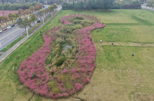 在中央商區(qū),成片的粉黛亂子草正值最佳觀賞期,云霧般的粉色花穗在陽(yáng)光下輕盈搖曳,已成為市民爭(zhēng)相打卡的“網(wǎng)紅”景點(diǎn)。“粉黛亂子草觀賞性雖高,養(yǎng)護(hù)卻需格外精心。”建發(fā)公司相關(guān)負(fù)責(zé)人介紹,為維持其最佳觀賞狀態(tài),園區(qū)采取了分區(qū)、分時(shí)的精細(xì)化養(yǎng)護(hù)策略。盛花期期間,養(yǎng)護(hù)人員會(huì)精準(zhǔn)控制澆水量,避免過(guò)多水分影響花穗形態(tài);雨季則及時(shí)排水,嚴(yán)防積水導(dǎo)致?tīng)€根。同時(shí),還安排了專(zhuān)人全天巡視,引導(dǎo)游客在指定區(qū)域文明觀賞,并對(duì)局部受損區(qū)域?qū)嵤?ldquo;點(diǎn)對(duì)點(diǎn)”修復(fù),確保每一株粉黛都能以最美姿態(tài),展現(xiàn)秋天的溫柔與浪漫。
