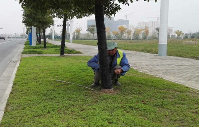 隨著近日氣溫迅速走低,綠化植物也進(jìn)入易凍傷階段。園區(qū)積極行動(dòng),立刻組織綠化養(yǎng)護(hù)單位強(qiáng)抓養(yǎng)護(hù)重點(diǎn),及時(shí)做好易凍樹木的防寒防凍保護(hù)工作。